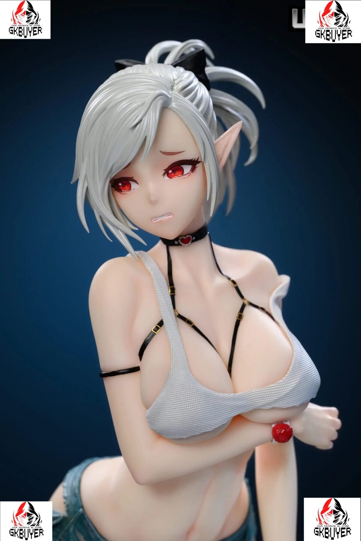 Realistic head + Guilty expression head + Large base + Signboard + Goblin (Eyes can light up) + Trash can + White clothing body + Crossed arms body (interchangeable)