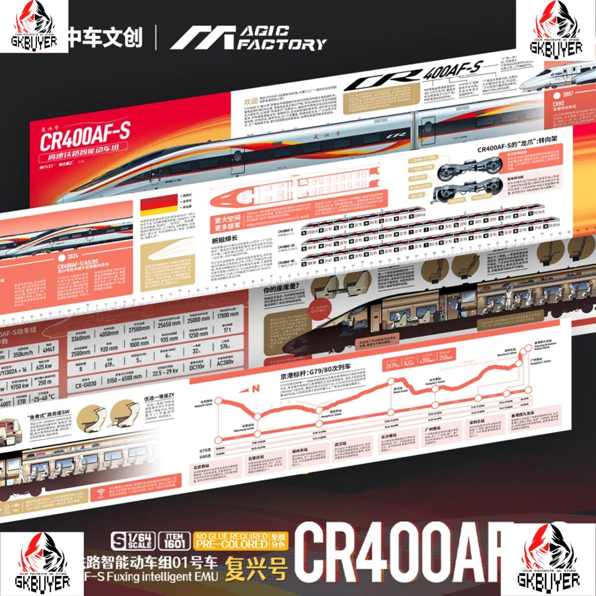 Magic Factory – 1/64 Iron Express Train Set Fuxing Hao CR400AF-S Assembly Model 1601 (Licensed)