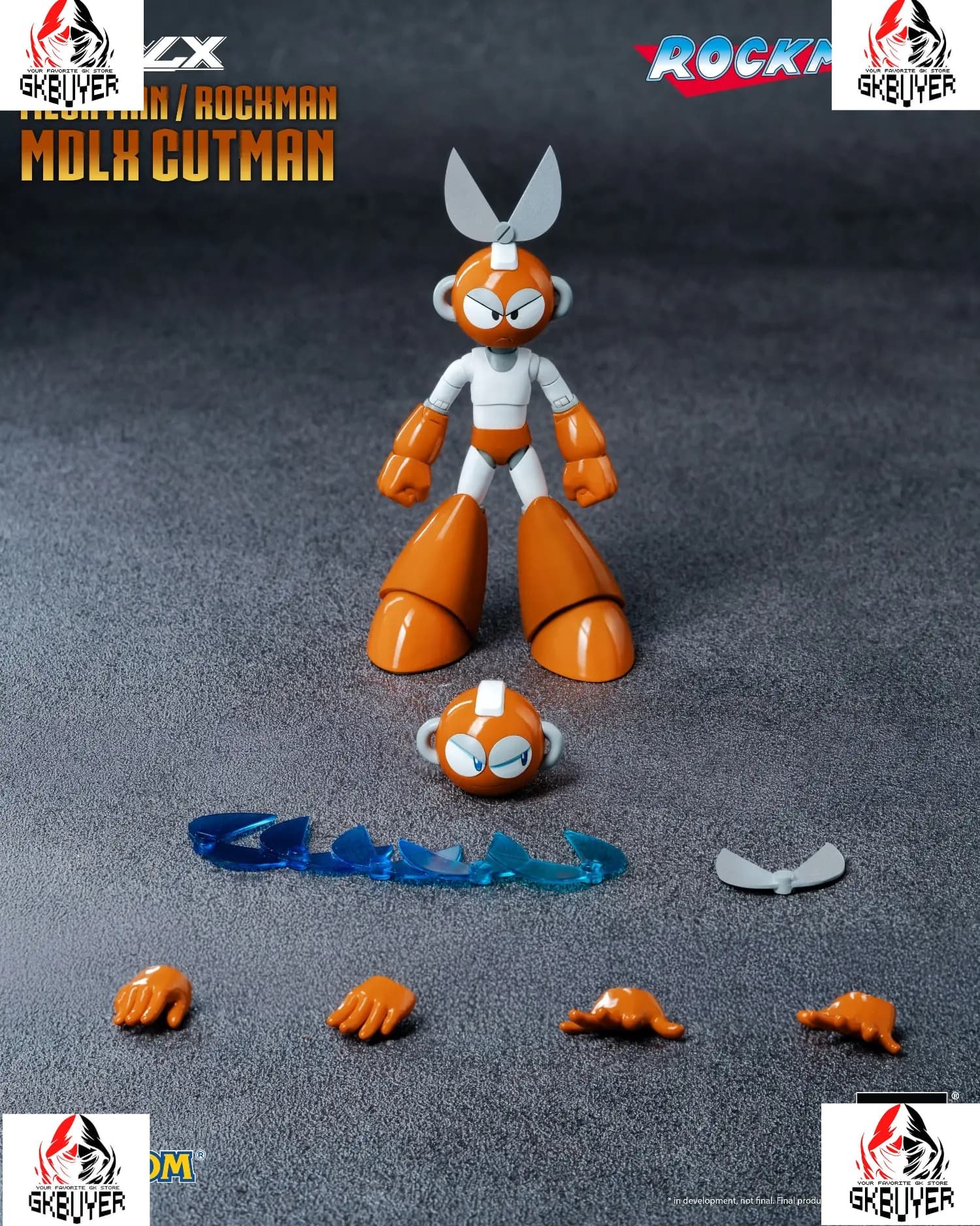 “Rockman / Mega Man” MDLX Cutman comes with two interchangeable head sculpts (one standard and one smiling head) that allow for different expressions with two pairs of interchangeable eyes. The top of the head sculpts features a replaceable structure, including an additional crown with detachable scissors, which can be swapped with the full scissor crown to simulate the state after launching the scissors. Other accessories include a scissor-launching effect part and multiple pairs of interchangeable hands. Additionally, a magnet is built-in inside each of its feet, allowing MDLX Cutman to adhere to metal surfaces!