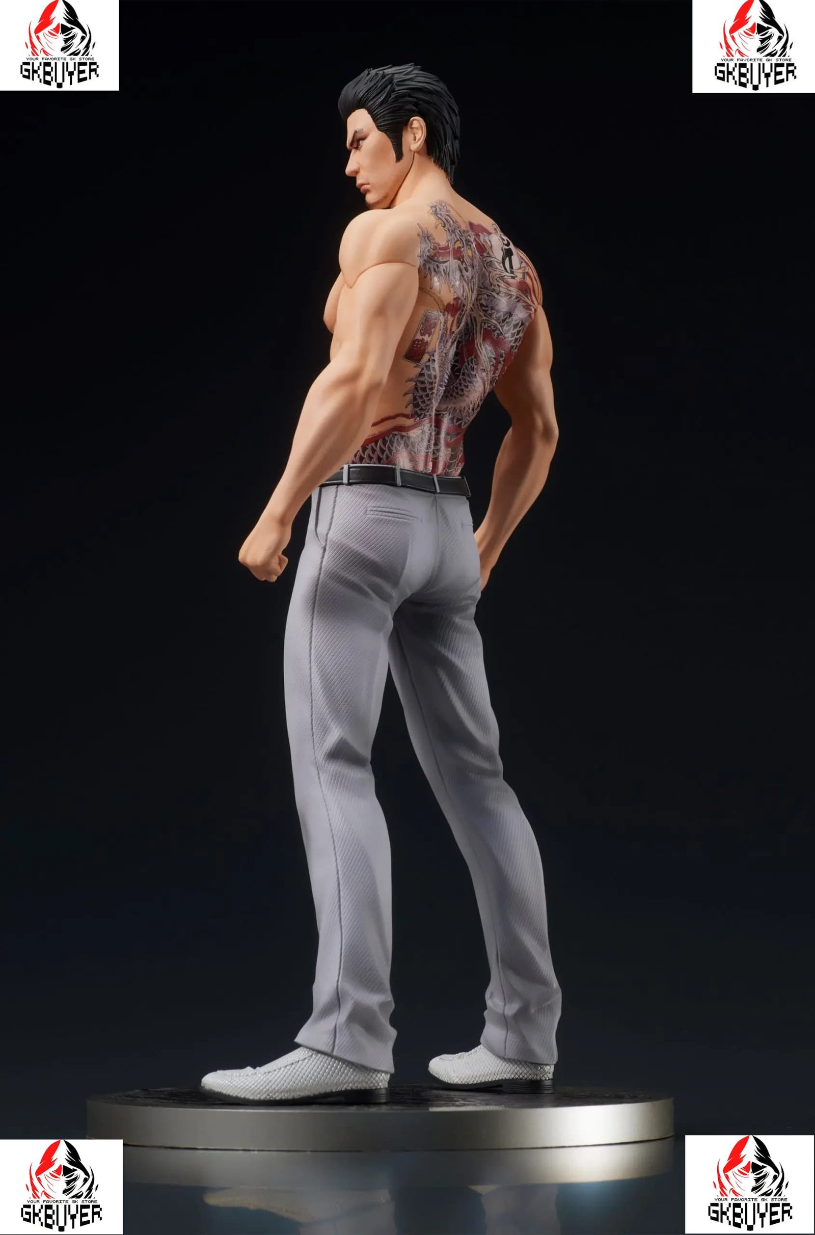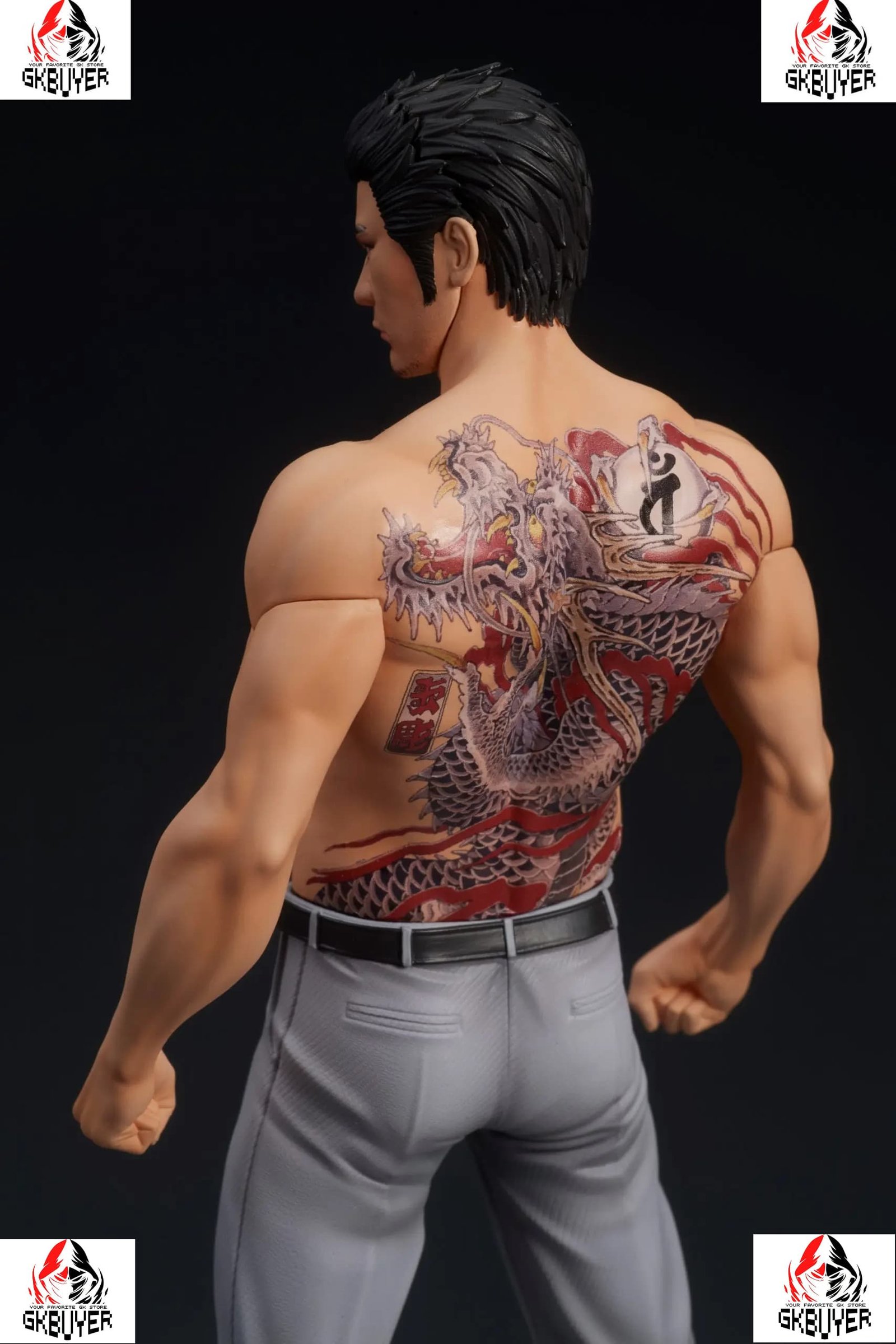 Kazuma Kiryu’s famous Ou Ryu tattoo and determined expression have been recreated in great detail using digital sculpting and color printing technology.
