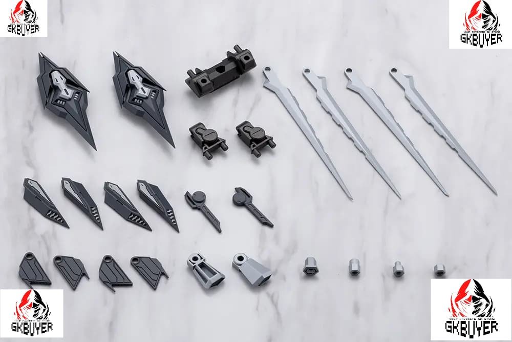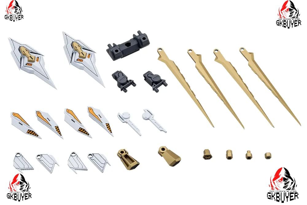 -The wing slash units can be reconfigured from the standard Quick Mode into Sharpener Mode by adding blade parts, transforming the silhouette into a more combat-ready style that dramatically changes the look and feel of any model.